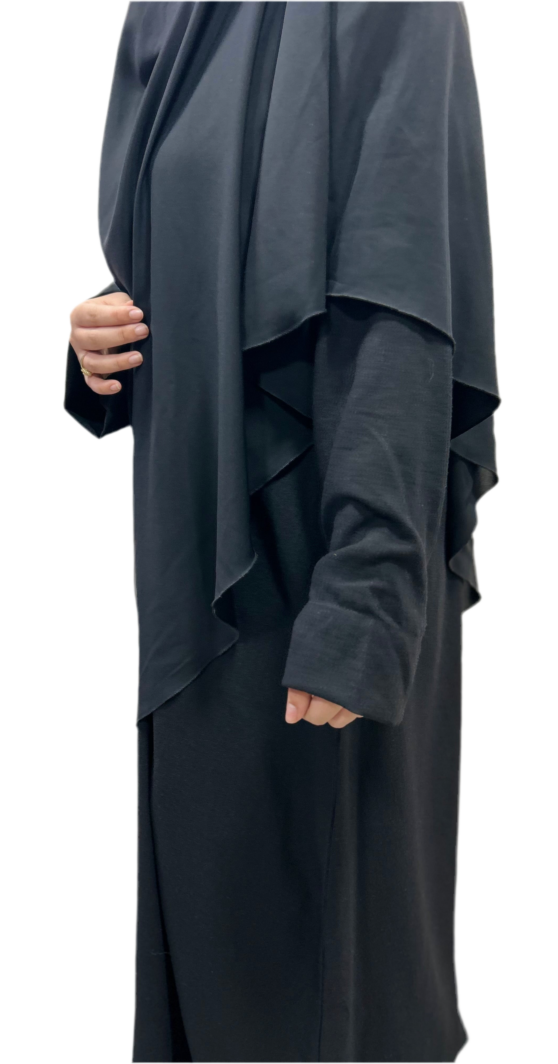 Confectionné dans un somptueux mélange de cachemire et de soie, ce khimar offre un tombé aérien, une texture soyeuse, et un confort inégalé au quotidien.
